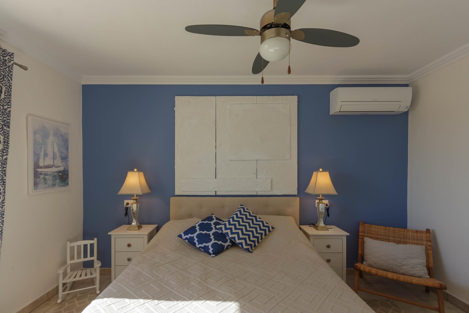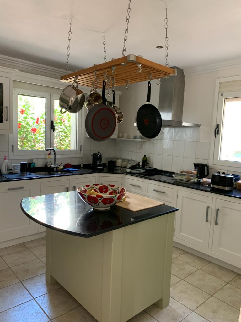 El chalet es de una sola planta y está muy bien amueblada con 3 dormitorios dobles con aire acondicionado y 1 dormitorio individual con ventilador de techo. Hay 3 cuartos de baño (2 en suite), salón-comedor y una cocina totalmente equipada.