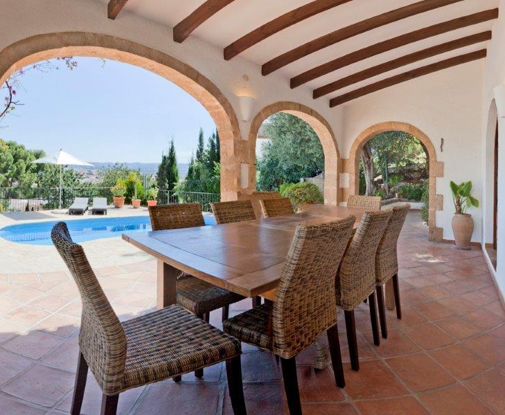 Tradicional chalet mediterráneo "hippy-chic", situado en el puerto en una de las mejores zonas de Jávea y disfrutando de maravillosas vistas al mar desde la terraza cubierta y la piscina. No hay necesidad de utilizar el coche mientras esté en Mezquida, ya que se encuentra muy cerca del puerto. Usted puede caminar hasta los bares de tapas y restaurantes locales en 5 minutos y la playa de cantos rodados de La Grava del puerto está a sólo 10 minutos a pie.